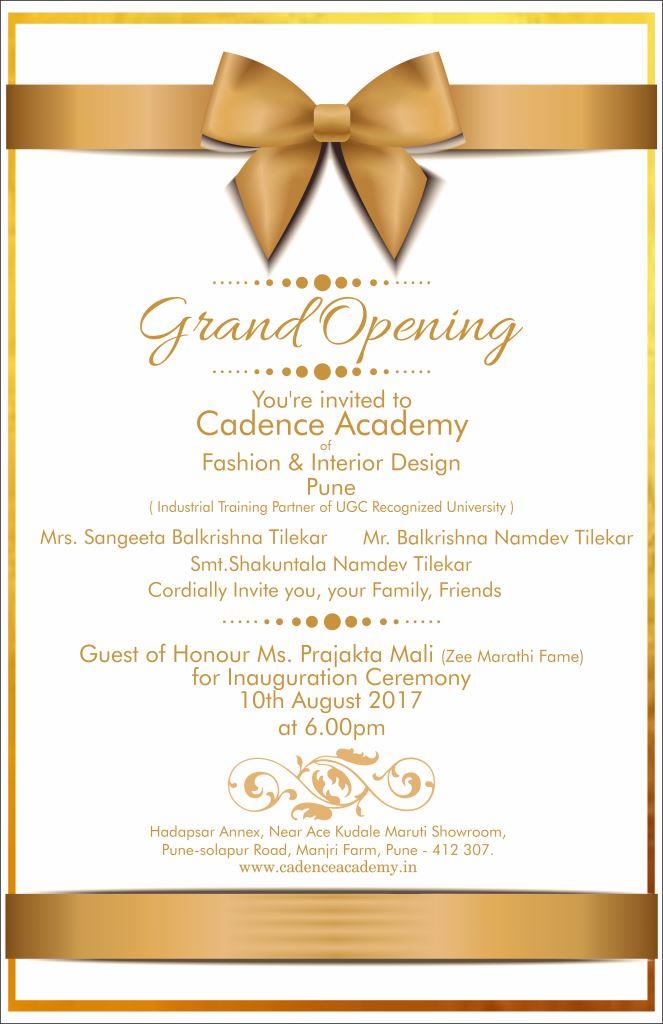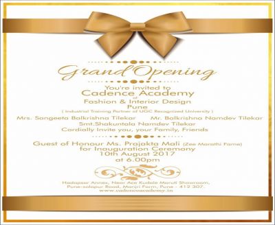 You are most cordially invited to the Grand Opening of Cadence Academy of Design in Pune on the 10th of August 2017 by the hands of Prajakta Mali. Call on 9378404040 for more information.